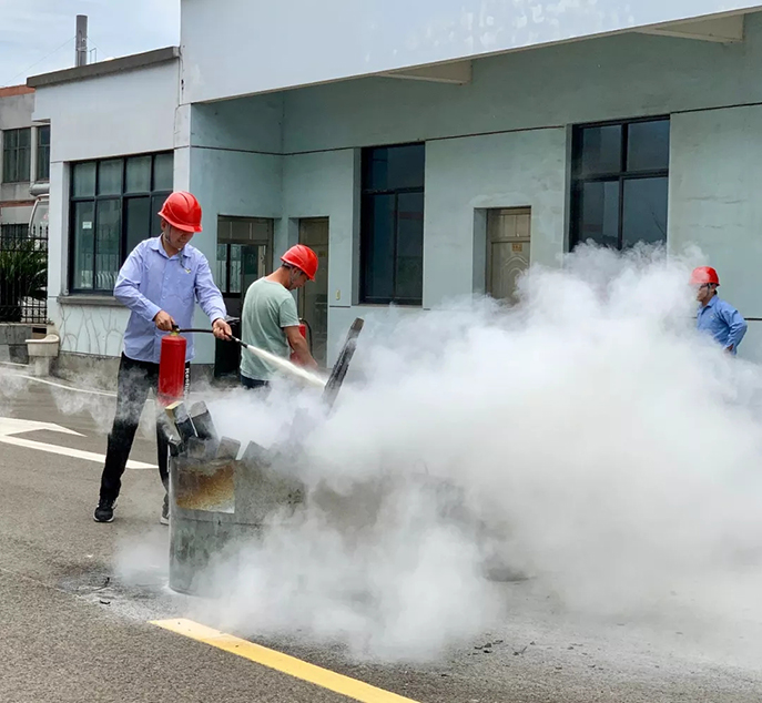 活動的第三部分為現(xiàn)場演練,浙江高壓開關(guān)廠有限公司、浙江德通變壓器有限公司自2015年成立義務(wù)消防隊,近年來企業(yè)未發(fā)生火災(zāi)及重大安全生產(chǎn)事故,盡管如此,消防安全的弦始終牢牢地繃在我們的頭上,時刻警醒著我們不斷加強(qiáng)安全生管理。演練現(xiàn)場,我們采用現(xiàn)場教學(xué)與實際操作相結(jié)合的方式,使義務(wù)消防隊的隊員們能夠更加熟練的操作消防滅火器材,更加穩(wěn)準(zhǔn)地?fù)錅缧苄苋紵幕鹧妗?/p>